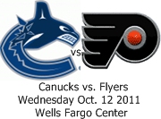 The Flyers face off against the Canucks on Wednesday night in thier 2011/12 home opener, just in time to cheer up the Philly sports fans. The Flyers head home 2-0 after opening the season on the road against the Stanley Cup Champion Boston Bruins, and the hated division rival N.J. Devils. This is another early season test for the Flyers, a team who most fans are not familiar with yet since all of the off season moves. the Canucks come in as defending Western Conference Champs Vancouver Canucks (1-0-1). So far afteer two games the new guys, have to get used to their names, look pretty good, but its still early yet, hopefully they play well enough so Phillt sports fans can forget about the Phillies and Eagles.