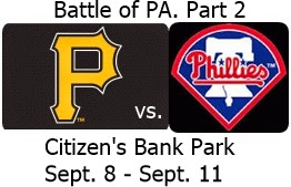 The Pittsburgh Pirates are in town to take on the Phillies in four game series in part two of MLB’s version of the “Battle of Pa”. The Pirates (74-68) come into this series riding a three game winning streak, while the Phillies are coming off a 3-2 loss to the Nationals. The Pirates lead the season series 3-0 after sweeping the Phillies in part 1 in Pittsburgh over the 4th of July weekend. The Pirates are currently holding the second wild card, and trailing the Cardinals by 4.5 games for the division lead in the NL Central.The Phillies will be playing the roll of spoiler and looking for a little pay back against their cross state rivals. The series will also feature two of the three players, Ben Revere .315, Josh Harrison 315, tied for second, battling it out for the NL batting title. The Pirates are 30-40 on the road, while the Phillies are 33-38 at home. With a little luck maybe the Phillies can pick up their 70th win and pull within six games of .500 at the end of this series. Keep the fingers crossed Phillies fans.