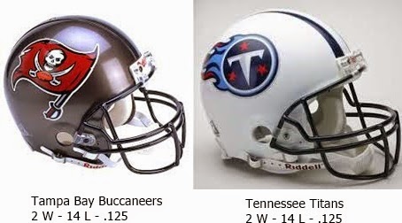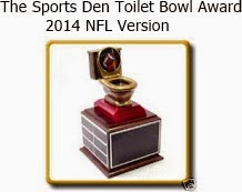 The 2014 NFL season is over so now it’s time for The Sports Den to award it’s prestigious toilet Bowl Award to he team that finished the season with the worse record. The Sports Den would like to congratulate this years co winners, the Tampa Bay Buccaneers, and Tennessee Titans. Both teams finished with 2-14 records. After the Buccaneers jumped out to a 20-7 lead over the Saints it looked like the Titans would be the sole winner, but the Buccaneers regrouped to grab defeat from the jaws of victory and tie the Titans. The reward for finishing with the worse record will be the top 2 picks in the 2015 NFL draft with the Buccaneers getting the #1 pick thanks to their strength of schedule or lack there of. Congratulations again to the Buccaneers, and Titans.