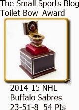 The NHL season is over and now it’s time for The Small Sports Blog to hand out it’s prestigious Toilet Bowl Award for the worse team in the NHL in the 2014/15 season. The Small Sports Blog would like to congratulate the 2014/15 Buffalo Sabres on being the worse team in the NHL. It was a tight race between the Sabres and Coyotes, but the Sabres were able to come out at the bottom. The reward for coming in last is most likely the #1 overall pick in the 2015 NHL Entry Draft which is a choice between Connor McDavid, and Jack Eichel. Congratulations again to the Sabres.