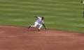 Tigers’ Javier Báez pulls off a terrific grab and makes a spinning throw to get the out at first against the Blue Jays