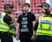 Protester chains himself to goalposts at Scotland v Israel match